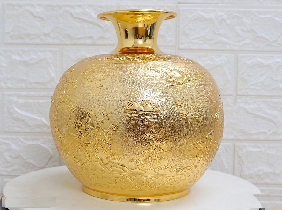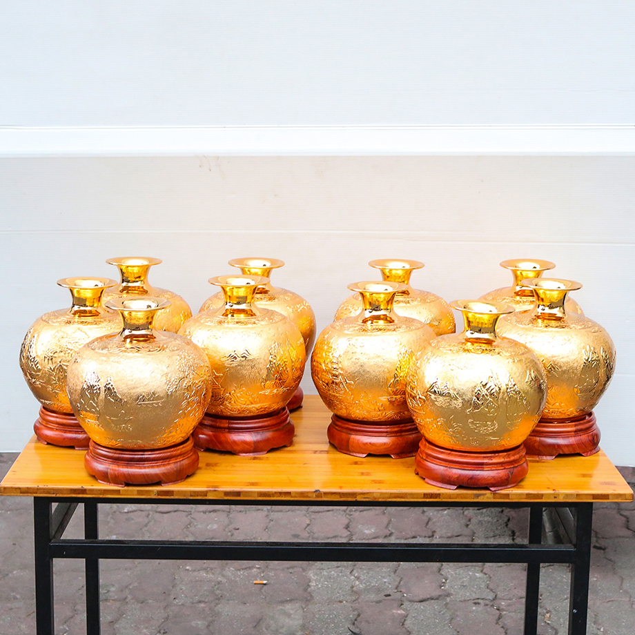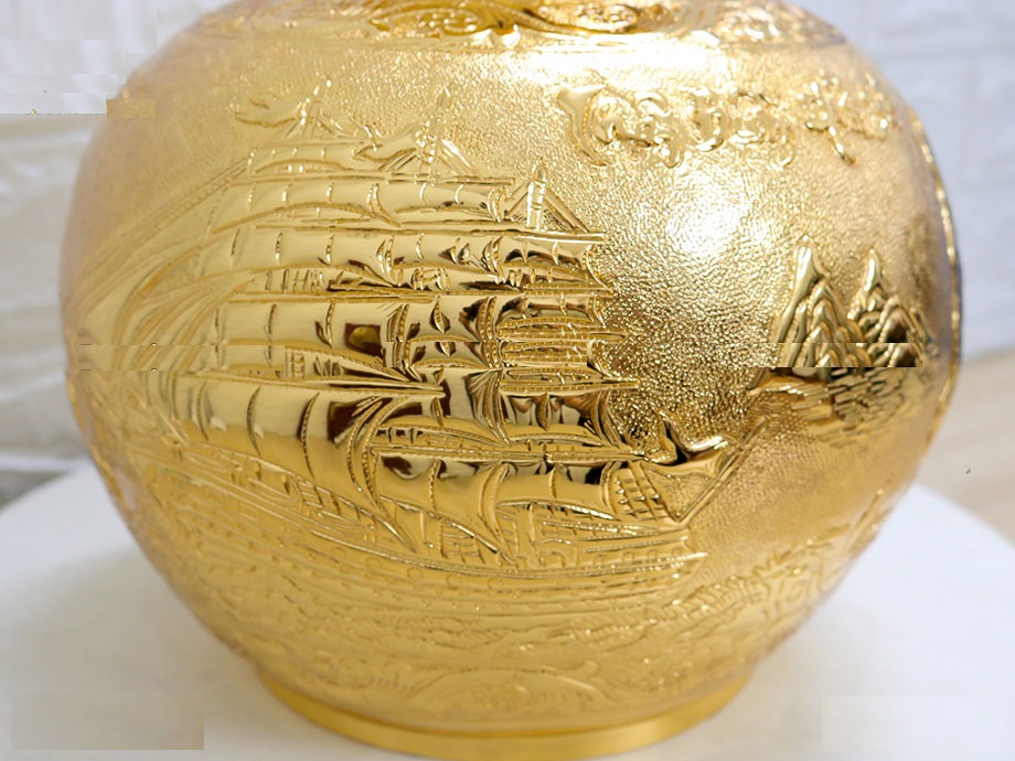 ▪️ Bình hút lộc NHẤT LONG được đúc bằng đồng vàng và bên ngoài mạ vàng làm tăng thêm vẻ sang trọng của sản phẩm.