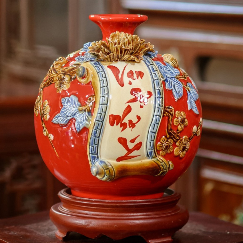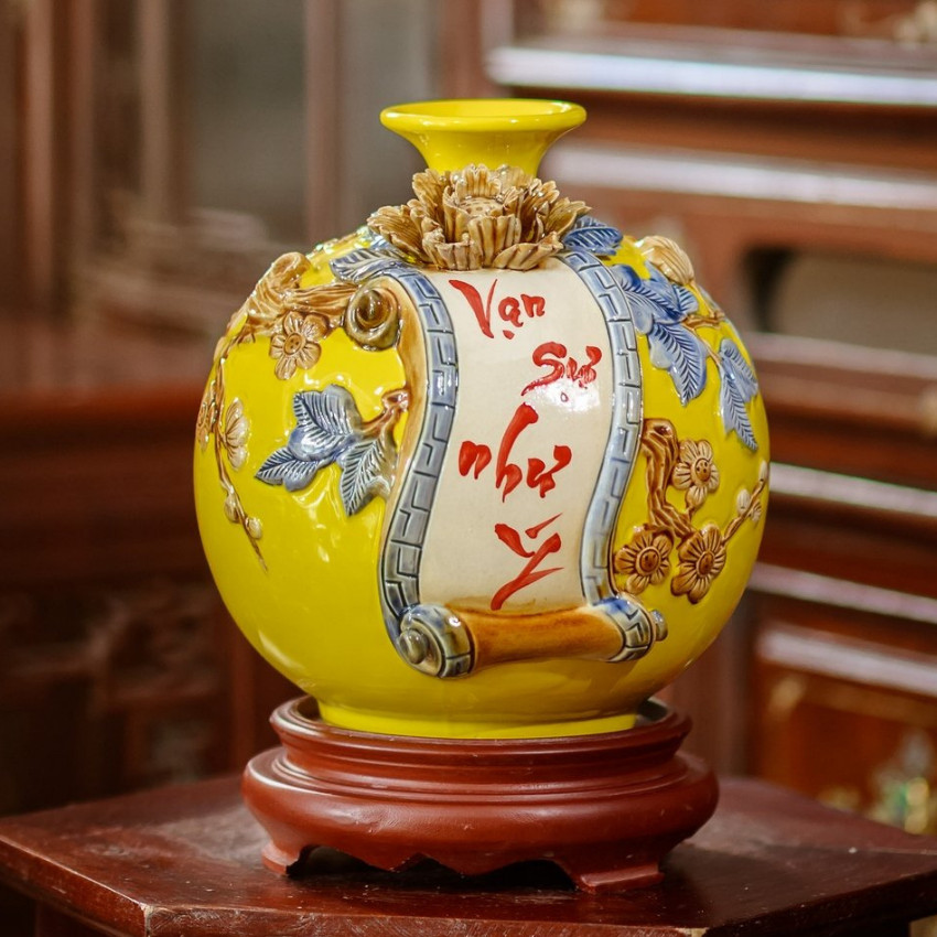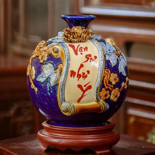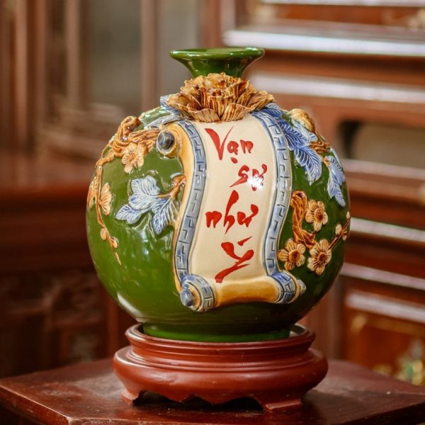 Bình hút lộc được đắp nổi lên bề mặt nhờ đôi tay khéo léo của những nghệ nhân trong làng gốm truyền thống Bát Tràng để khách hàng lựa chọn, để tăng tính sang trọng thì bình hút tài lộc có thể được tô điểm bằng một lớp vàng kim – vàng thật, cao cấp.