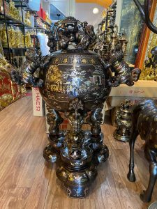 Mẫu đỉnh đồng trang trí được đúc thủ công từ đồng đỏ nguyên chất kết hợp với khảm ngũ sắc, khảm tam khí từ các kim loại quý: Bạc, vàng 9999, được chạm khảm rất kỳ công, tinh tế mang lại sự sang trọng cho không gian, thể hiện sự thịnh vượng, quyền quý, đẳng cấp của gia chủ.