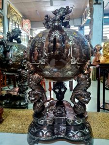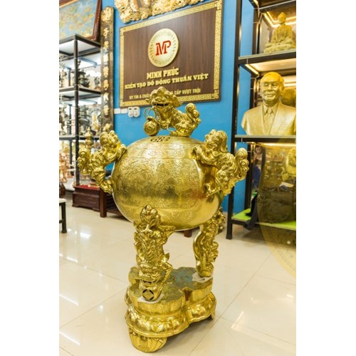 Đỉnh thất lân vờn cầu được biết đến như một trong những vật phẩm vừa dùng để làm đồ thờ cúng, vừa có vai trò trấn an, cân bằng phong thủy cực tốt với hình ảnh 7 con nghê đang trong tư thế vờn ôm lấy quả cầu tròn. Vật phẩm không chỉ tăng giá trị thẩm mỹ cho không gian mà còn tạo thêm vẻ quyền thế, sang trọng, gia tăng vượng khí cho gia chủ, ngăn chặn những luồng khí xấu xâm nhập.