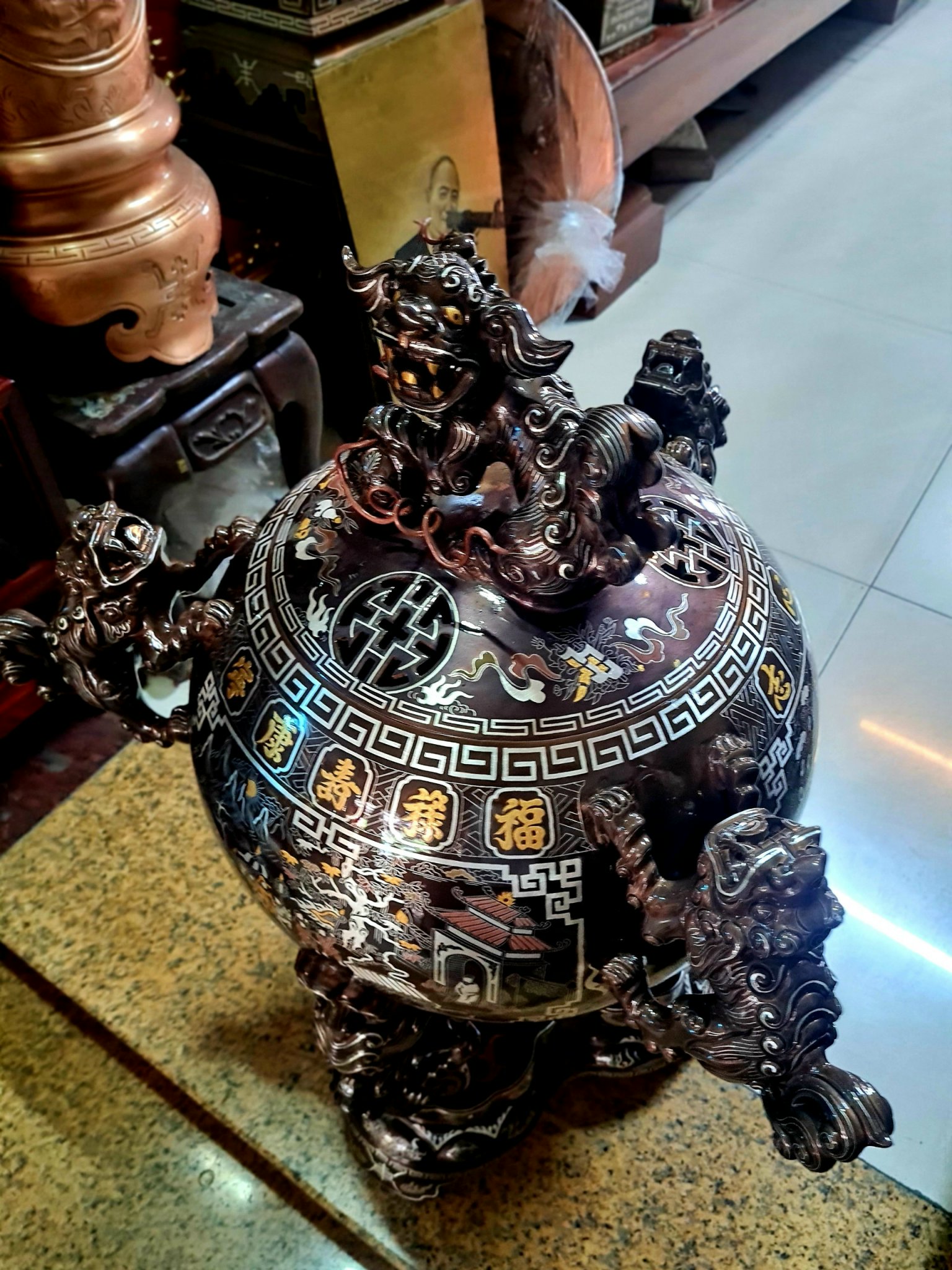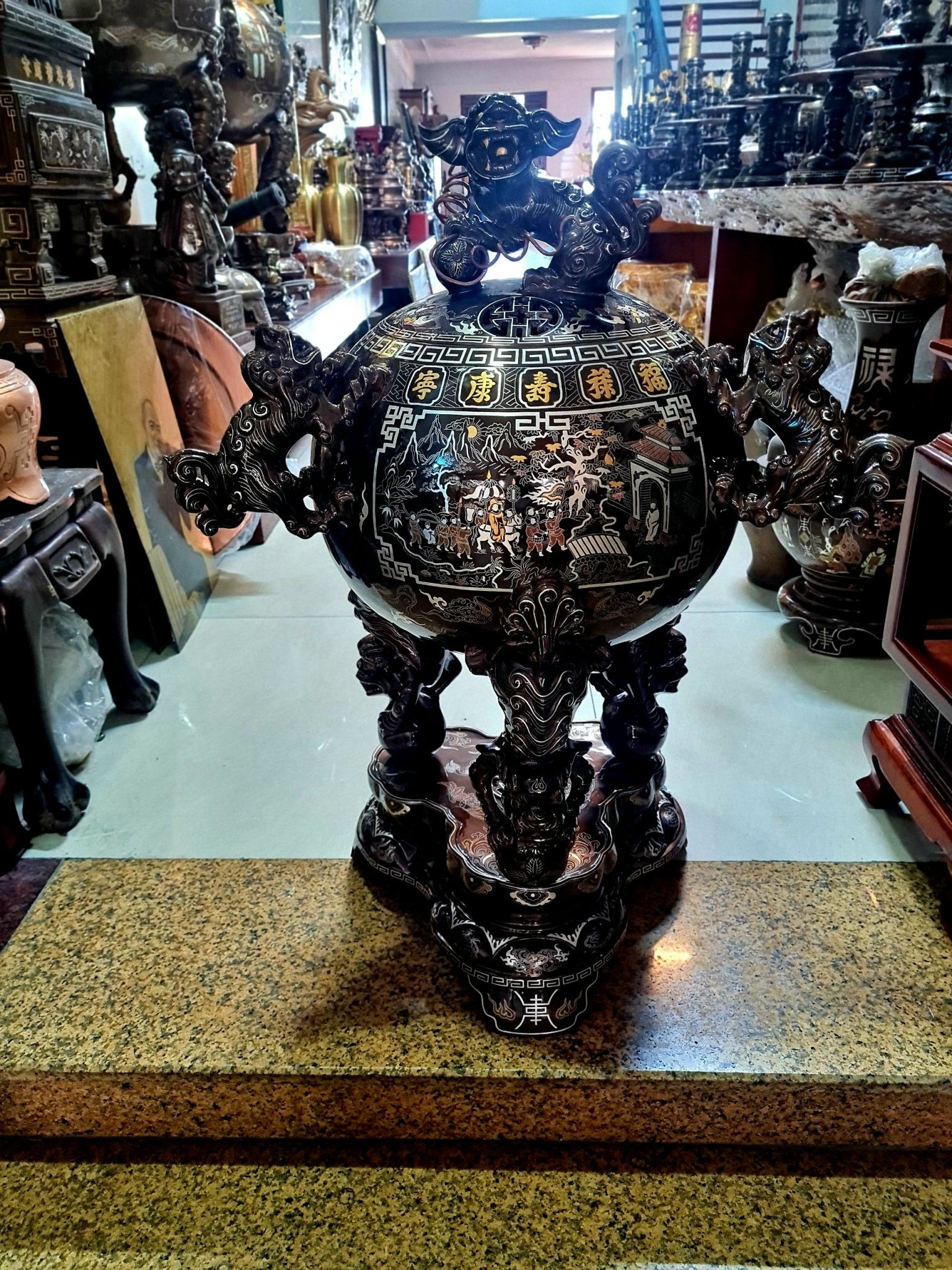 ĐỈNH ĐỒNG KHẢM NGŨ SẮC