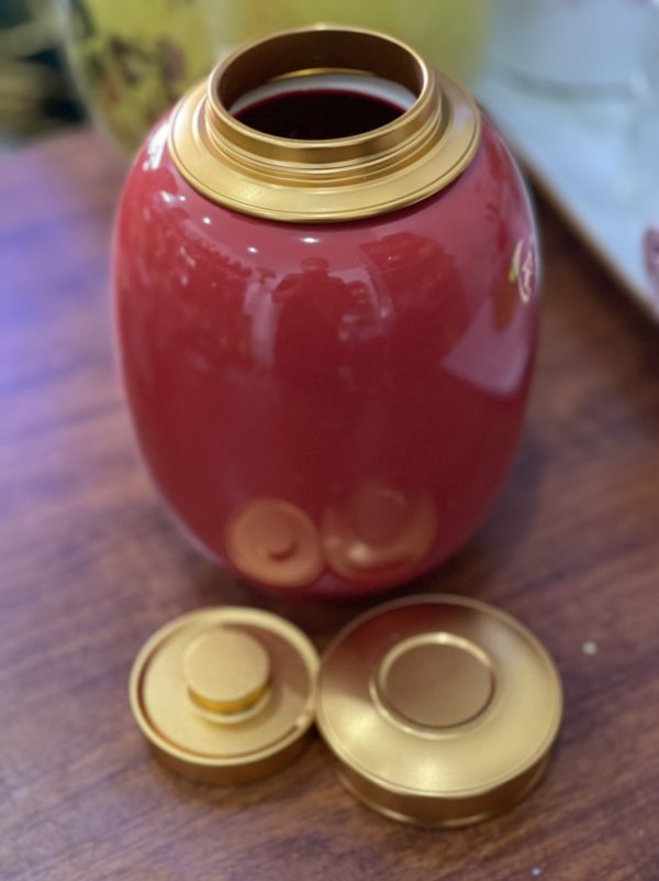 -Nắp làm bằng hợp kim đồng 2 lớp có ren xoáy,đảm bảo trà không bị ẩm mốc và ám mùi