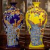 Men làm bình là Ngọc lục bảo là bài men cỏ rất quý, khi xưa chỉ được dùng trong cung đình Huế mới được nghệ nhân Bát Tràng phục chế lại và chế tác thành bình phong thủy